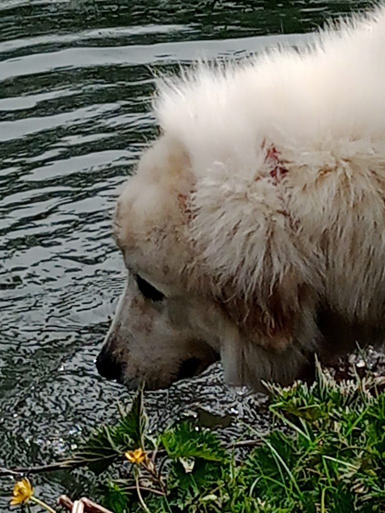 I have a short section of hose with a rose on the end I use on the pontoon water point to wash her down along with very expensive environmentally dog shampoo that can go direct into the water course without harm to the fish. Now I have a clean non stinky dog but very wet! And until she has dried not allowed inside. Fortunately, the weather god was kind and she dried quickly with a little help from the doggy blow drier!