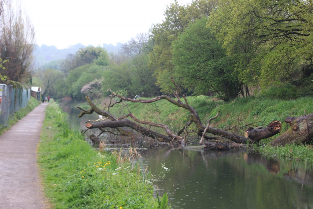 A little way down the track, the next major obstacle to be overcome a small trading estate has been built over the canal, although the towpath still exists reduced to a narrow walkway. Unfortunately the canal bed does not. The locks for the rest of the walk are in need dire restoration. Needing approximately £300.000 each to restore their former glory.