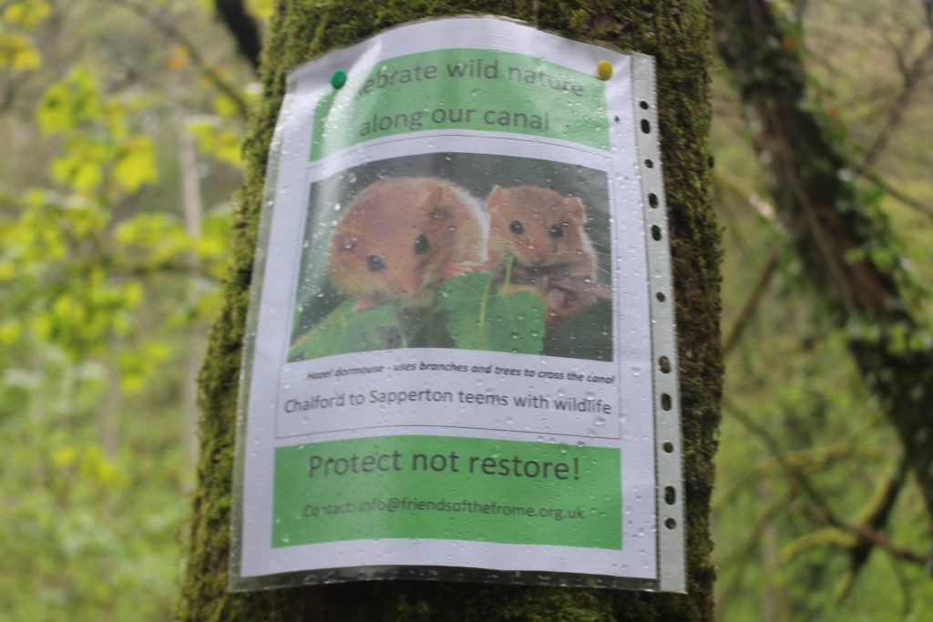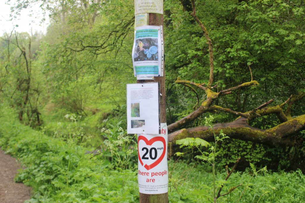 The lovely Chalford is about halfway, canal side scenery is spectacularly beautiful, with canal bank cottage gardens butting up against an overgrown canal home to all sorts of wildlife. Here the walkers met resistance to the CCT’s plan to regenerate the canal back to its former self. Many of the locals are opposed to the CCT’s plans, would like it to stay as it is now. Posted on trees for the rest of the walk, photos of the wildlife that resides around and about. A few residents handed out leaflets, holding placards. With no direct confrontation, it was all very pleasant and cordial. I can really understand why they would wish to keep things as they are. Here the canal looks beautiful and vibrant as it is now.