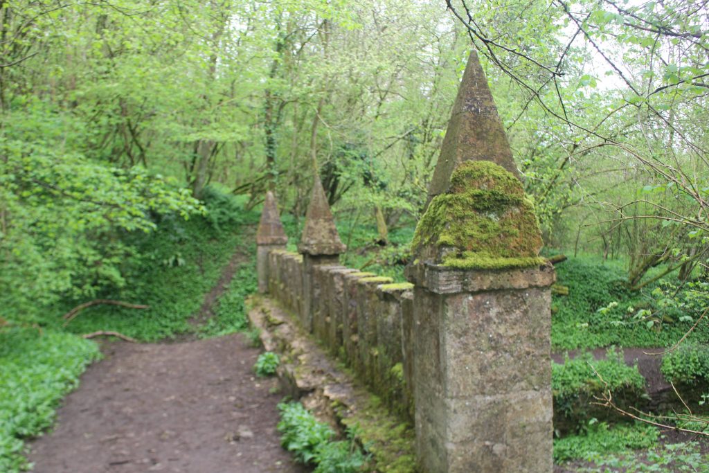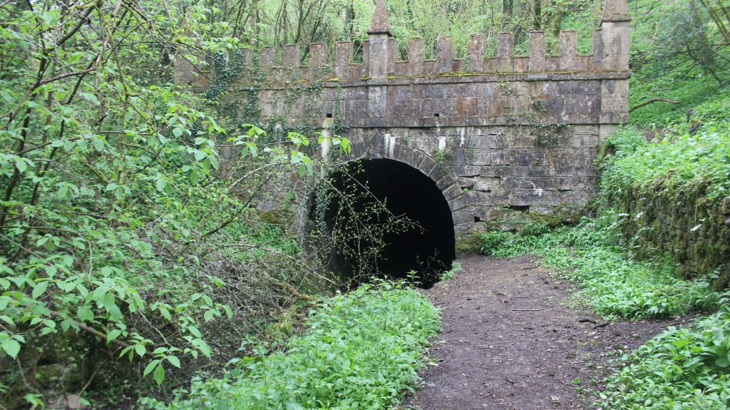 Continuing on, the Locks become overgrown, almost indistinguishable as locks. Woodlands abound with bluebells and wild garlic. It’s a beautiful landscape. With pleasant conversation, the second half of the walk-through stunning countryside, time flew by. Soon at our destination. The Daneway Inn who’s carpark on top of the old canal course. The Frome is still just a short way away running along the bottom of the Inn’s field where picnic benches reside. There, packed lunches for those that booked. Connie and I brought our own (Cheese sandwiches and pork pies). Once we had eaten we walked the short distance down to Sapperton Tunnel entrance, a coroneted entrance way. It is probably the fanciest tunnel entrances I have ever seen.